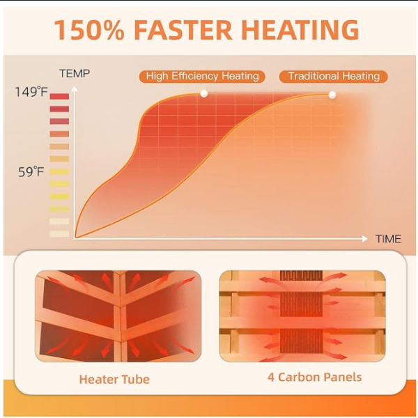 【Mahusay na teknolohiya ng pag-init】 Nilagyan ng 4 na mga panel ng carbon at 1 carbon tube, ang aming 1 tao na infrared sauna ay nagbibigay ng 360-degree na pag-init ng paligid, tinitiyak kahit na pamamahagi ng init. Karaniwan, kumakain ito sa loob lamang ng 10-15 minuto, na nagpapahintulot sa iyo na tamasahin ang iyong karanasan sa sauna nang walang pagkaantala.
