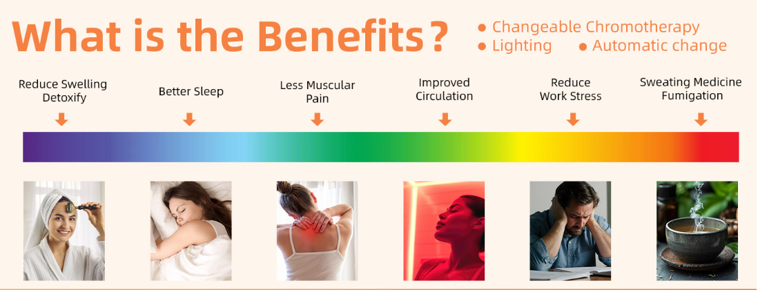 Kapag ginamit, ang malayong infrared radiation ay maaaring magsulong ng sirkulasyon ng dugo, mapabilis ang metabolismo, mapawi ang pagkapagod ng kalamnan, at makakatulong na maalis ang kahalumigmigan at metabolic basura mula sa katawan, lalo na ang angkop para sa mga sedentary na tao, mga mahilig sa palakasan, at ang mga nagbabayad ng pansin sa pang-araw-araw na kalusugan. Kung ikukumpara sa mga tradisyunal na sauna, kumonsumo ito ng mas kaunting enerhiya (na may lakas na halos 800-1200W), mabilis na kumakain (naabot ang itinakdang temperatura sa loob ng 10 minuto), at hindi nangangailangan ng mga kumplikadong sistema ng kanal. Ang pang -araw -araw na pagpapanatili ay simple, na nagbibigay ng mga modernong urbanites ng isang maginhawa at mahusay na solusyon sa kalusugan ng bahay.