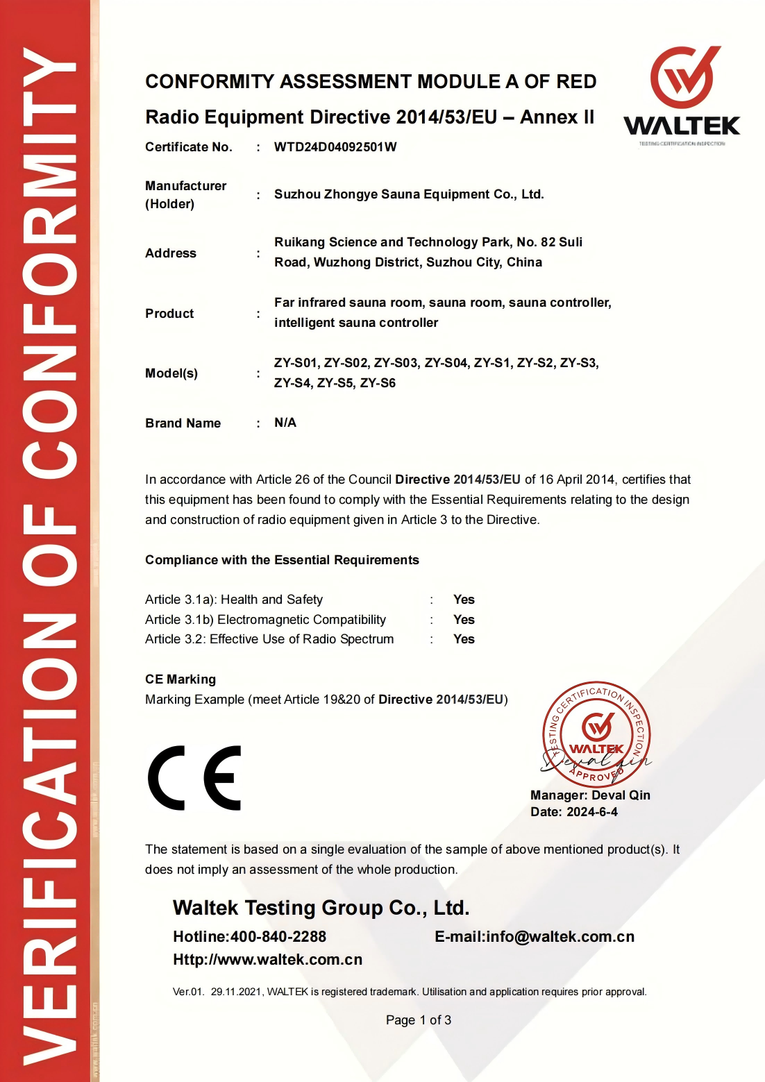 1 tao na malayo sa infrared sauna--- Kwalipikasyon ng Produkto