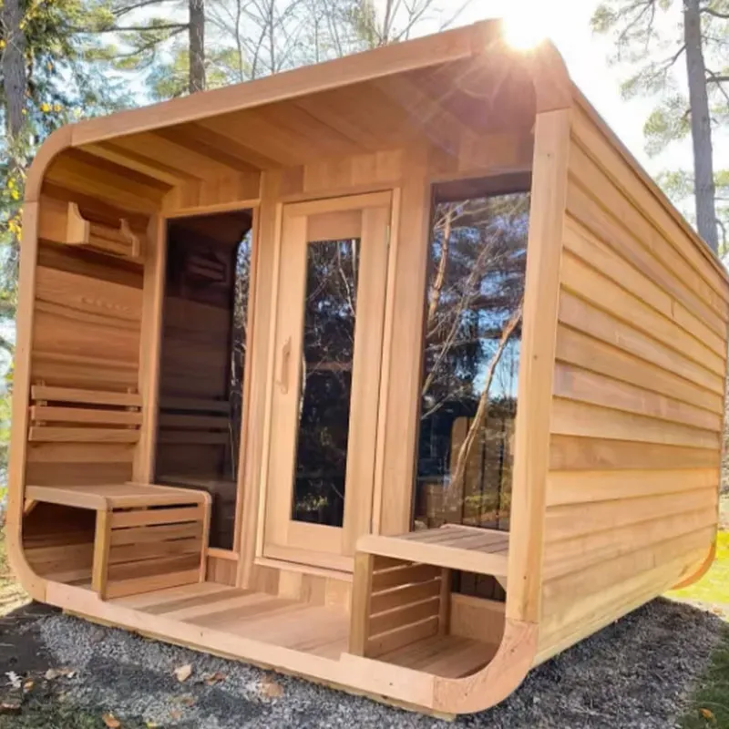 Ginawa mula sa de-kalidad na hemlock wood, ang panlabas na sauna room na ito ay hindi lamang matibay ngunit nagpapalabas din ng natural at eleganteng texture. Sinusuportahan nito ang buong pag-customize upang matugunan ang iyong mga natatanging pangangailangan, kung ito ay pagsasaayos ng laki upang umangkop sa iyong panlabas na espasyo, pagbabago sa interior layout, o pagdaragdag ng mga personalized na detalye. Angkop para sa iba't ibang panlabas na lugar, kabilang ang mga home courtyard, terrace, homestay courtyard, at leisure farm, madali itong maisama sa iyong kasalukuyang kapaligiran. Sa umaga, magsimula ng nakakarelaks na sauna sa ilalim ng araw at simoy ng hangin upang magising ang isang makulay na araw; sa gabi, tamasahin ang mainit na balot na may paglubog ng araw upang maibsan ang pagod sa buong araw; sa malamig na taglamig, ihiwalay ang lamig sa mainit na hemlock sauna room at damhin ang dobleng init ng katawan at isipan. Ito ay hindi lamang isang premium na kagamitang pangkalusugan ngunit maaari ding maging isang lugar ng pagtitipon para sa paglilibang ng pamilya at isang katangiang espasyo para sa mga kaibigan upang magtipon, na nagdaragdag ng higit na saya at texture sa iyong panlabas na buhay.