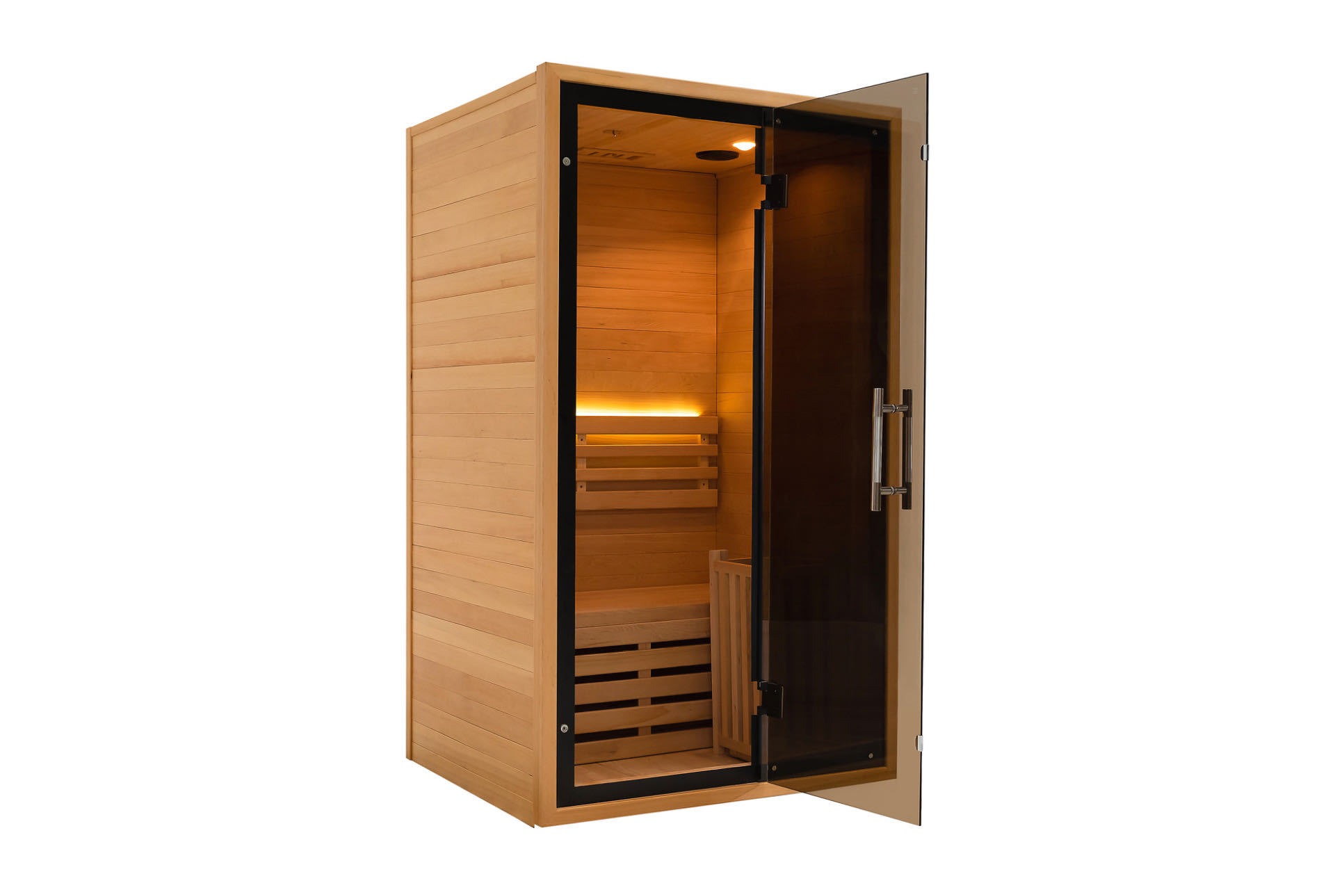 Ang sauna na ito ay gumagamit ng natural na solid wood bilang pundasyon, matalinong teknolohiya bilang core, at ang kulay abong itim na glass door bilang highlight. Lumilikha ito ng bagong benchmark para sa kagalingan sa tahanan sa lahat ng aspeto mula sa hitsura hanggang sa paggana. Hayaan kang tangkilikin ang propesyonal na antas ng pangangalaga sa sauna nang hindi umaalis sa bahay at magsimula ng isang pamumuhay na pinagsasama ang kalusugan at istilo.