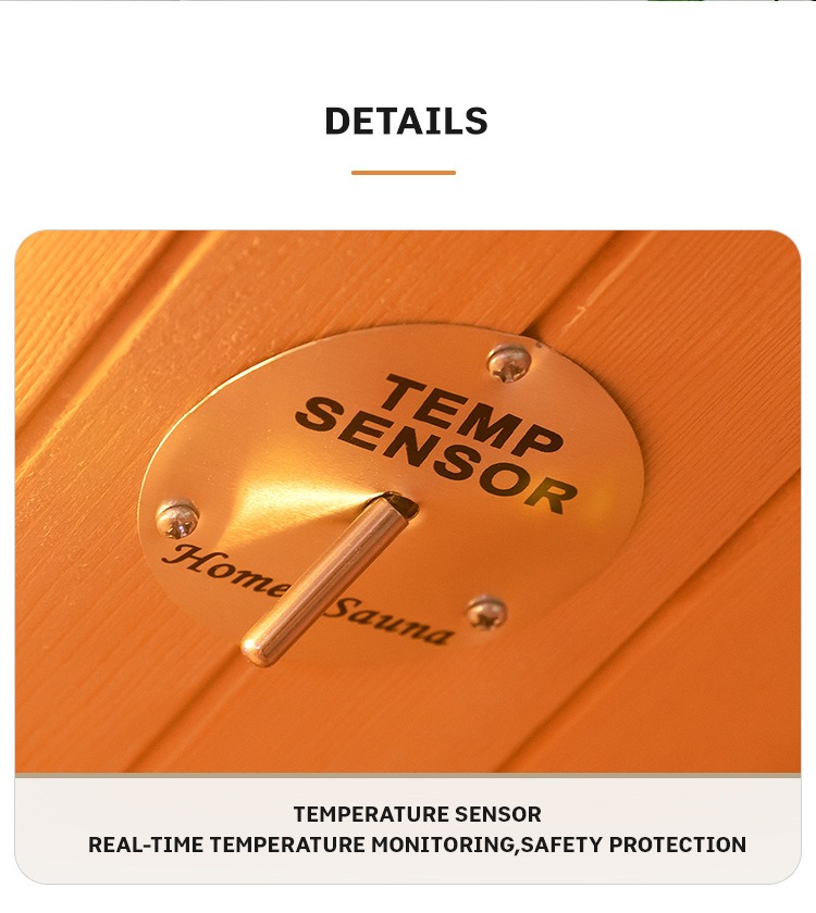 - Real-Time Temperature Control System: Ang built-in na sensor ng temperatura ay tumpak na sinusubaybayan ang panloob na temperatura upang matiyak ang kaligtasan sa sauna.