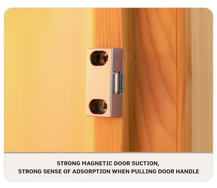- Mga Metal Hinges at Magnetic Door Catch: Ang mga metal na bisagra ay may malakas na kapasidad na nagdadala ng pagkarga nang walang deformation, at ang magnetic door ay sumasaklaw nang mahigpit upang mai-lock sa init at privacy.