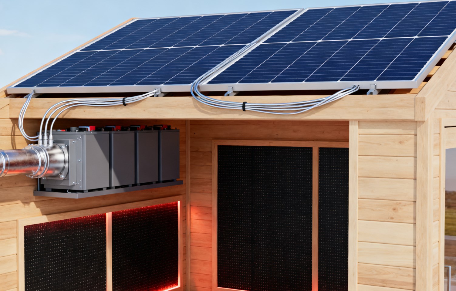 Pagsasama ng Enerhiya ng Photovoltaic: Ang ilang mga komersyal at sambahayan sa mga sauna ay nagpatibay ng isang kumbinasyon ng "photovoltaic panel + energy storage baterya." Sa mga senaryo na may sapat na sikat ng araw, maaari nilang matugunan ang 30%-50%ng demand ng enerhiya ng pag-init ng sauna (ang data ay tumutukoy sa konklusyon ng industriya na nabanggit kanina na "ang suplay ng kuryente ng photovoltaic ay binabawasan ang pagkonsumo ng enerhiya sa pamamagitan ng 55%"), na binabawasan ang tradisyonal na pagkonsumo ng kuryente.