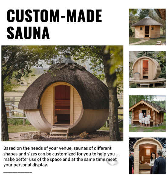 Pag-customize ng Laki: Mula sa single-person mini models hanggang sa multi-person social models, angPanlabas na salamin na pinto panlabas na steaming roomtumpak na nagpaplano ng panloob na espasyo ayon sa lugar ng site upang matiyak ang ginhawa sa paggamit at pagiging makatwiran sa paggalaw.