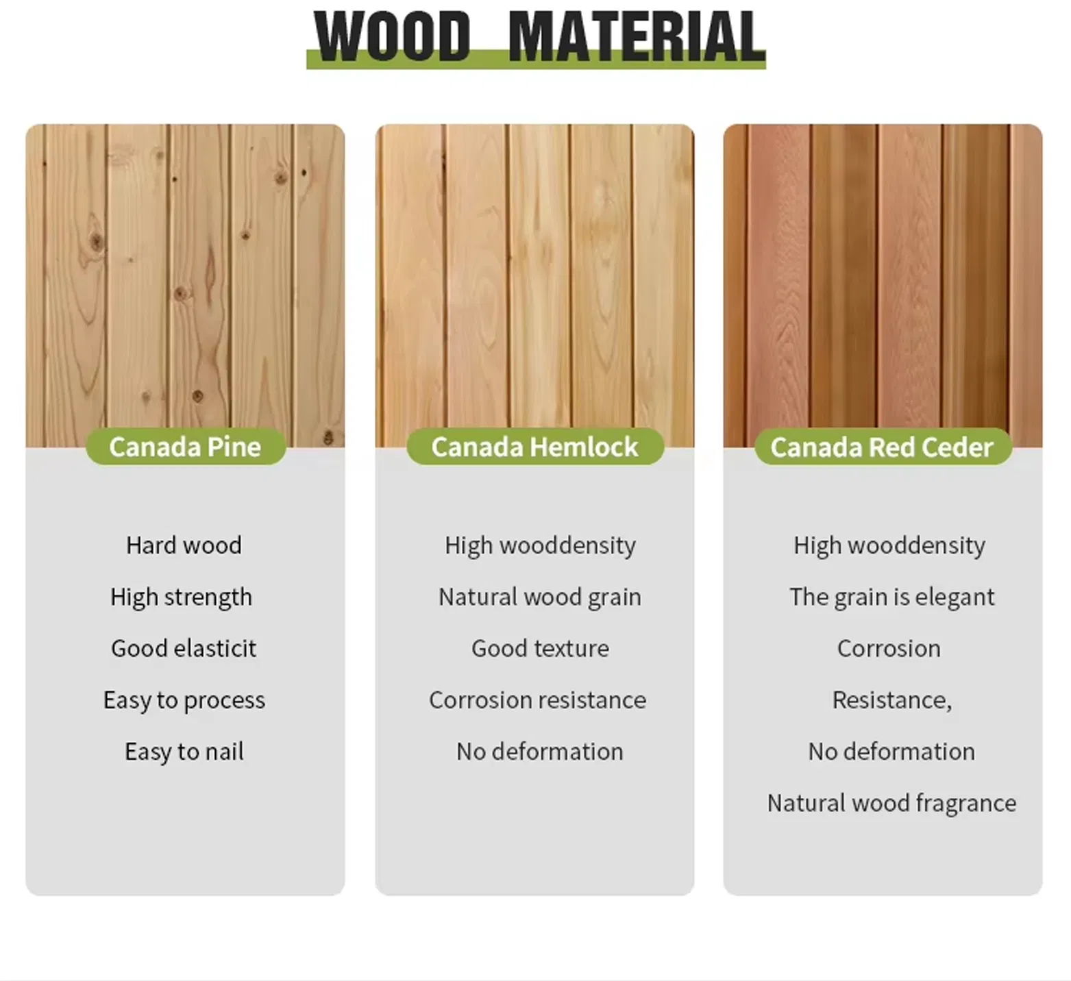 ✅North American Solid Wood Build– Handcrafted mula sa sustainably sourced Canadian pine, hemlock, o red cedar para sa walang kaparis na tibay at mainit at natural na aroma.