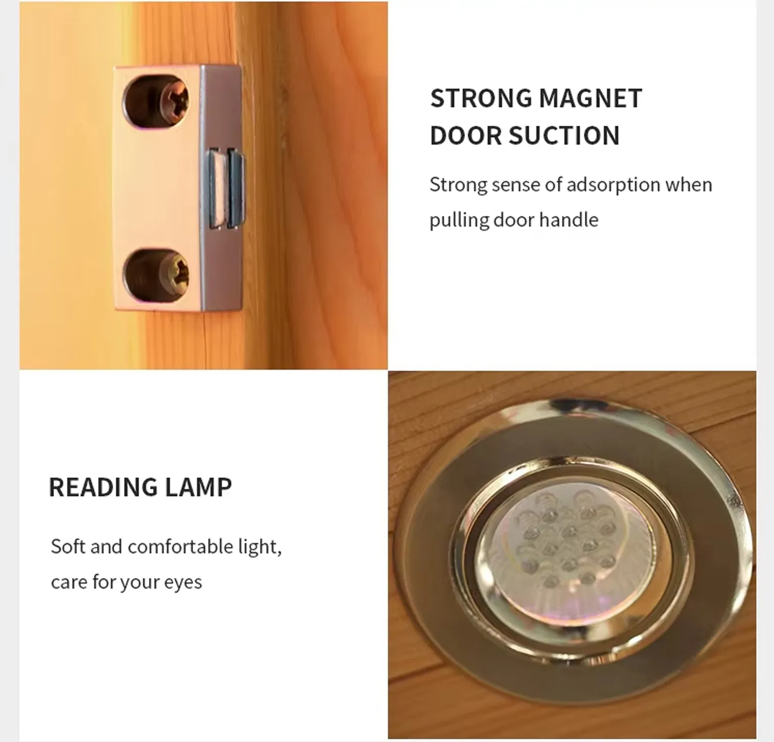 Ina-upgrade mo man ang iyong master bathroom, nagdaragdag ng wellness zone sa iyong home gym, o gumagawa ng backyard oasis, ang compact na 2-in-1 na disenyo na ito ay walang putol na pinaghalo sa iyong palamuti. Ang natural na wood finish at modernong glass panel ay nagdaragdag ng karangyaan sa anumang silid.